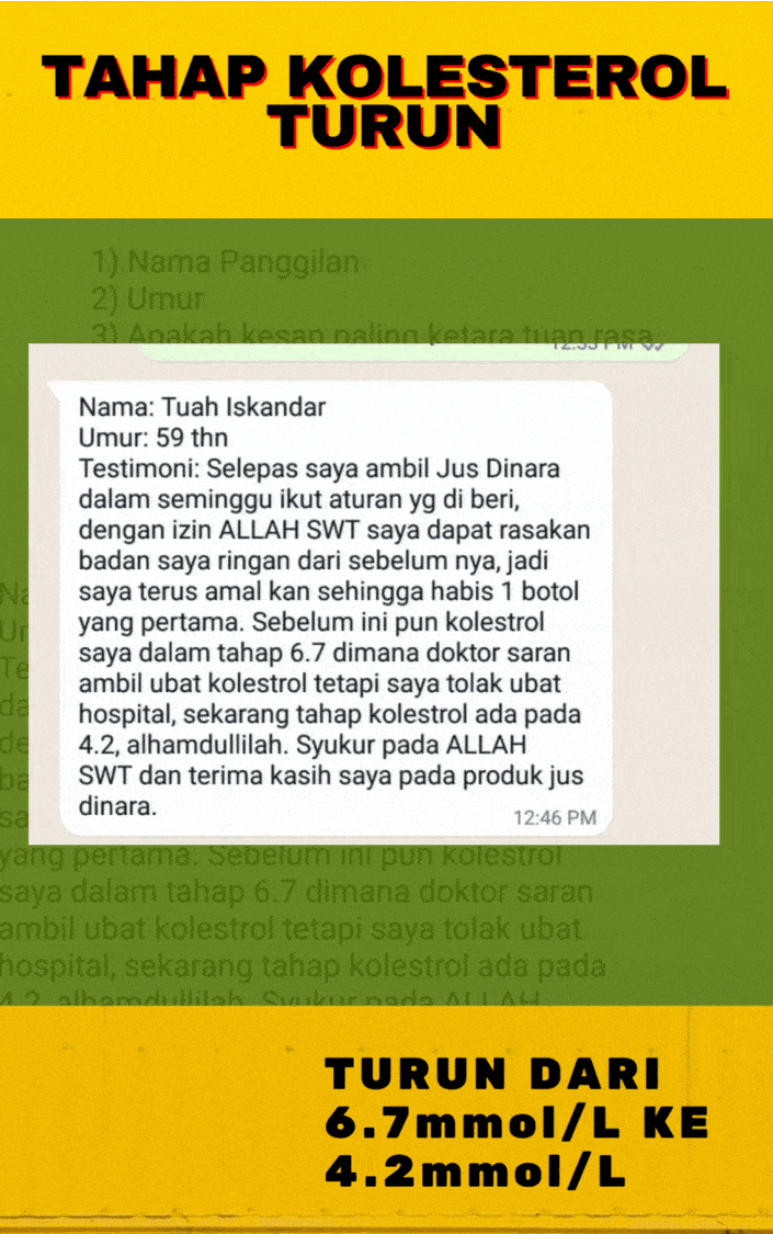 Sebabnya, selain paling bagus untuk Kolesterol, Dinara juga berkesan dalam bantu